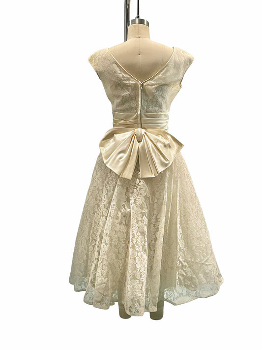 1950s Cream Lace and Satin Party Dress