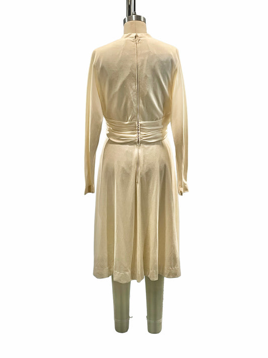 1970s Cream Poly Fine Knit Marilyn Monroe-esque Dress