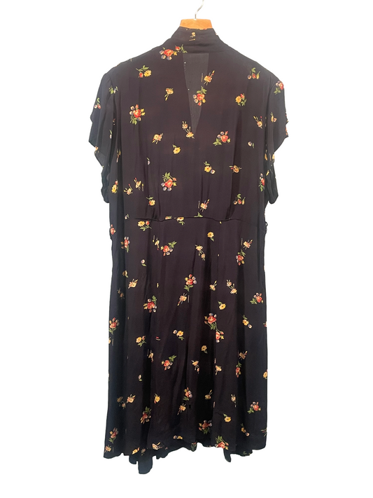 1940s Navy Artist Pallet Novelty Print Cold Rayon Plus-Size Day Dress