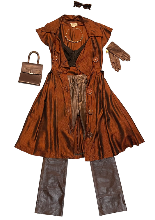 1980s Caramel Leather Satin-Lined Hooded Tie Waist Jacket