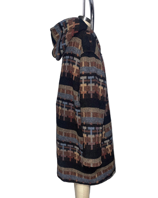 1980s Brown, Blue and Black Wool M Lyman Co. Hooded Toogle Coat