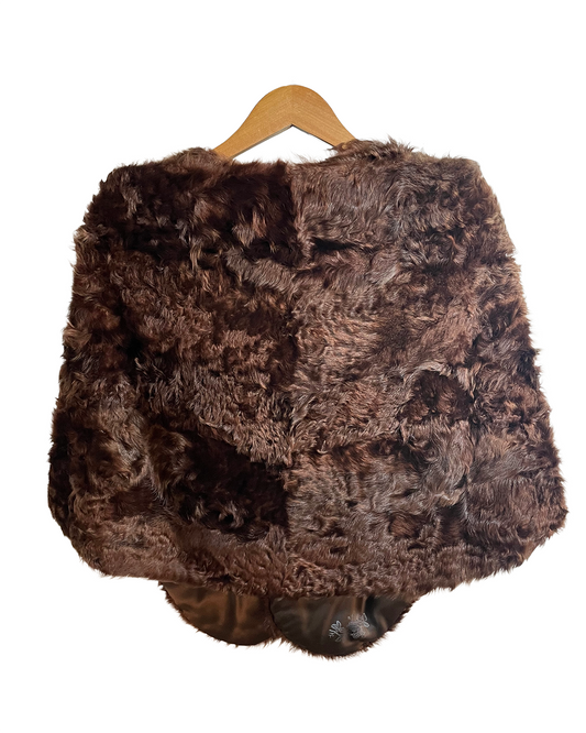 1960s Brown Faux Fur Tonal Waves Swing Coat