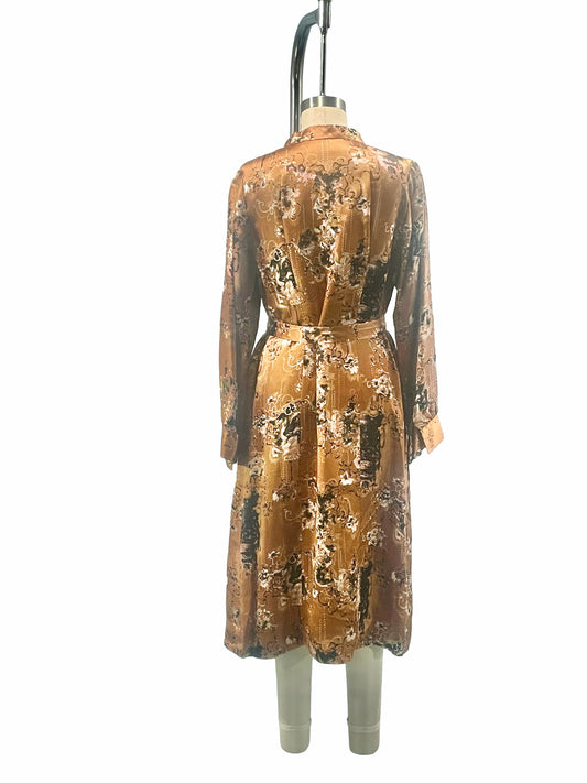 1960s Copper Silk Satin Import Self-Belt Shift Dress