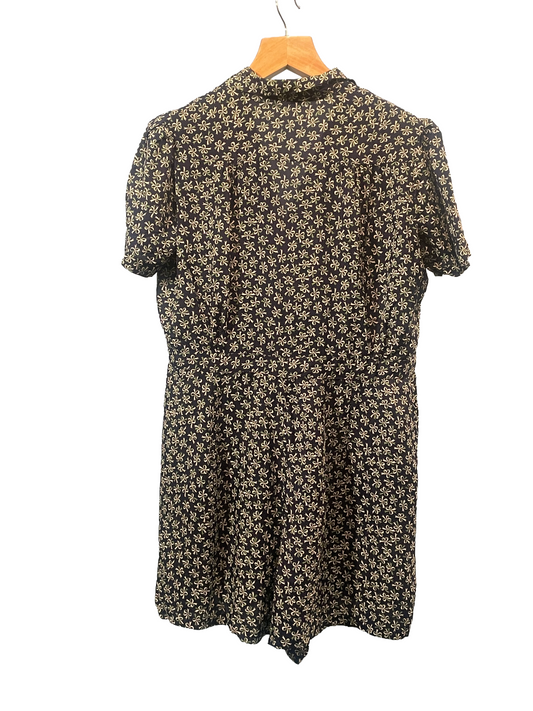 1940s Navy Green Bows Print Rayon Romper Skirt Plus-Size 2-Piece Set