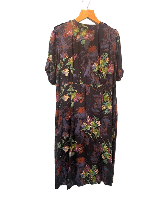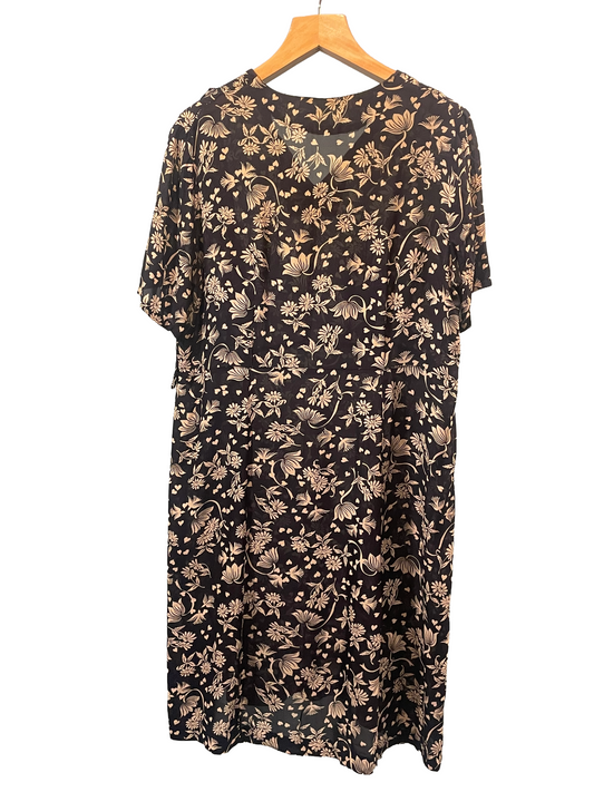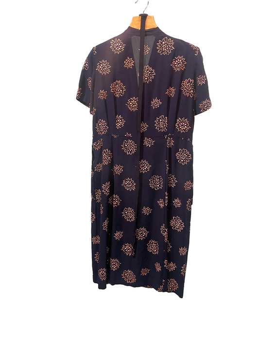 1940s Navy Pink Bouquet Cold Rayon Plus-Size Dress