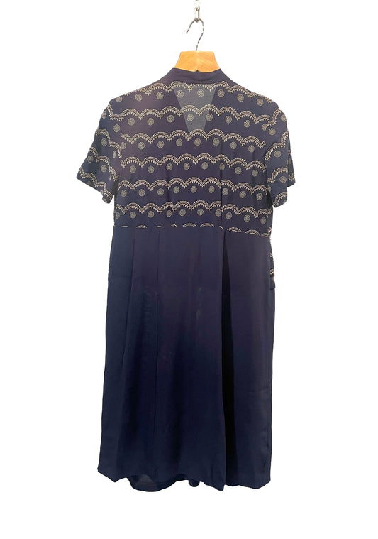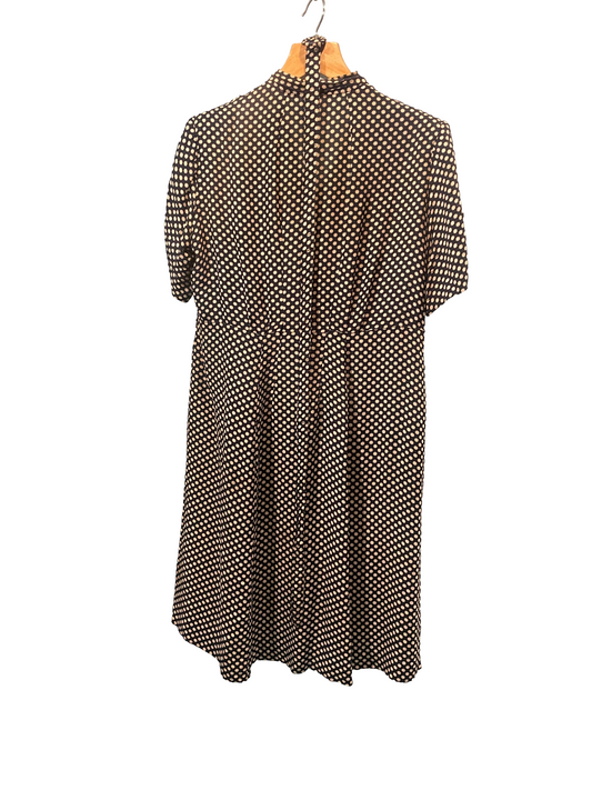 1940s Navy White Scallop Print Pussy Bow Rayon Plus-Size Day Dress