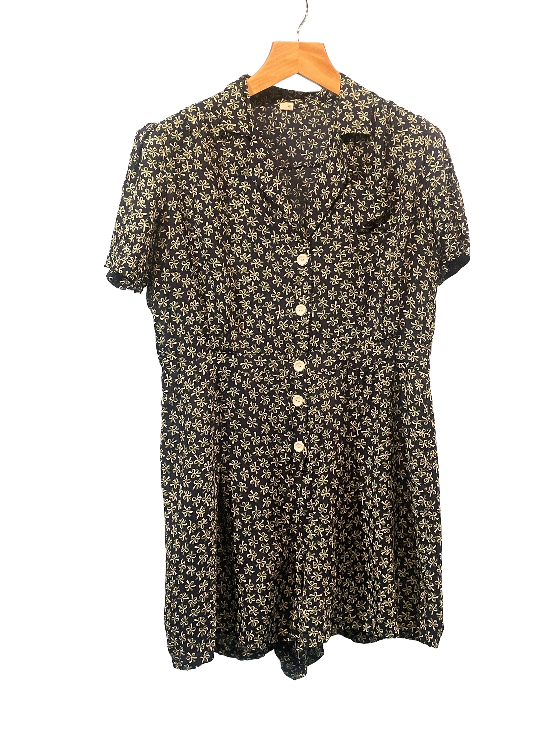 1940s Navy Green Bows Print Rayon Romper Skirt Plus-Size 2-Piece Set