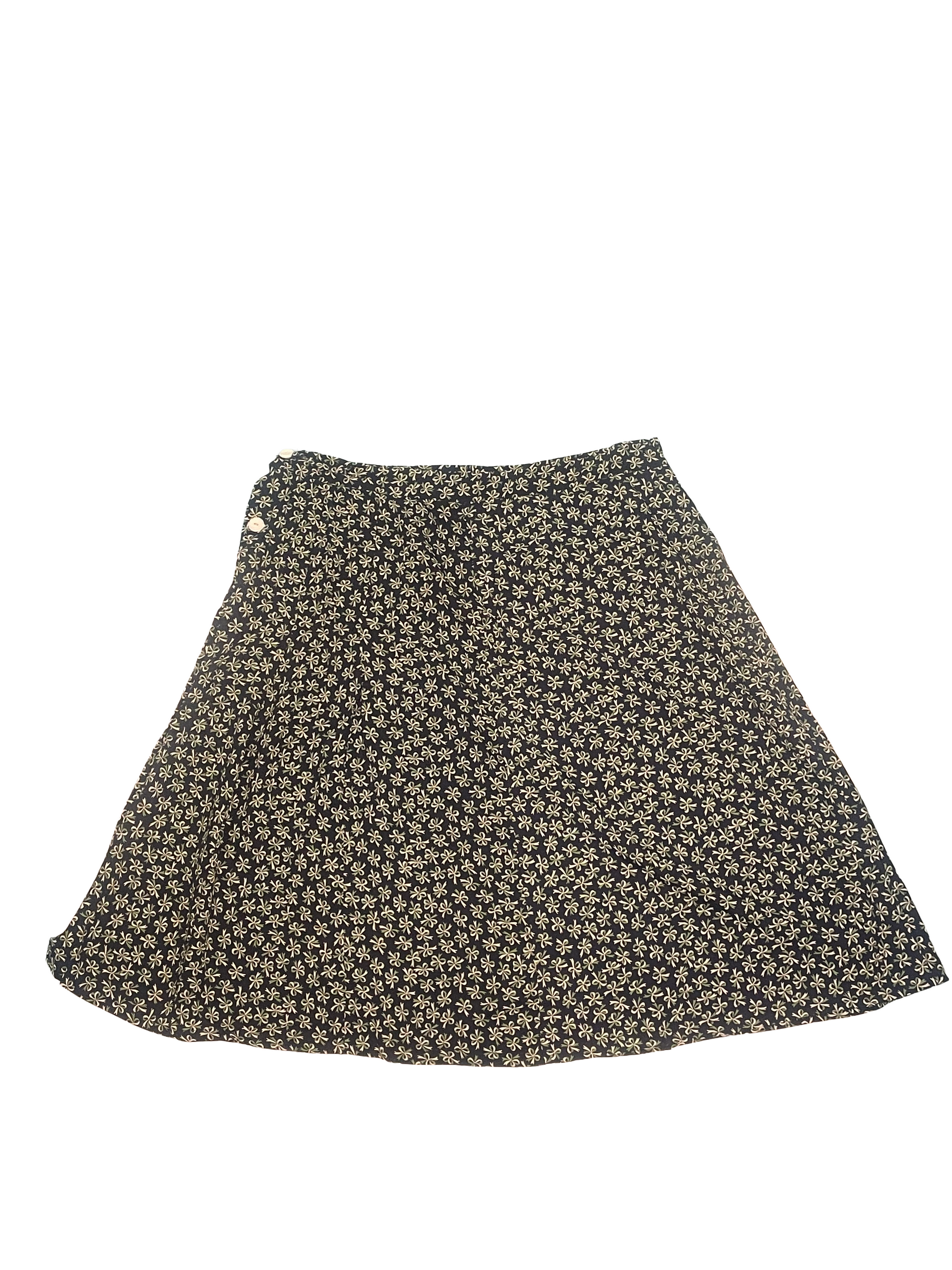 Closures: Button placket at romper. Side buttons at wrap skirt.