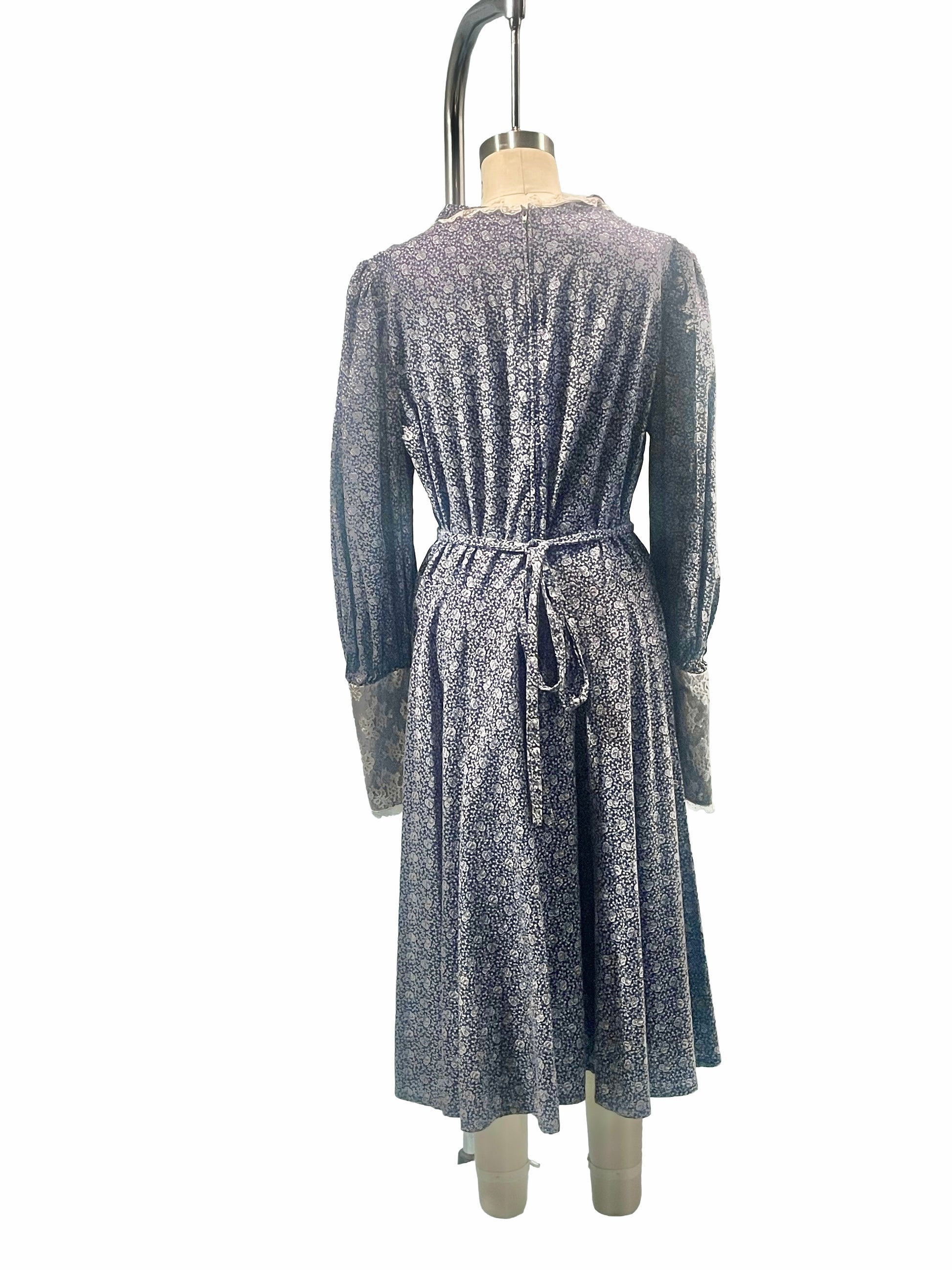 1970s Blue Ditsy Floral Gunne Sax Style Maxi Dress