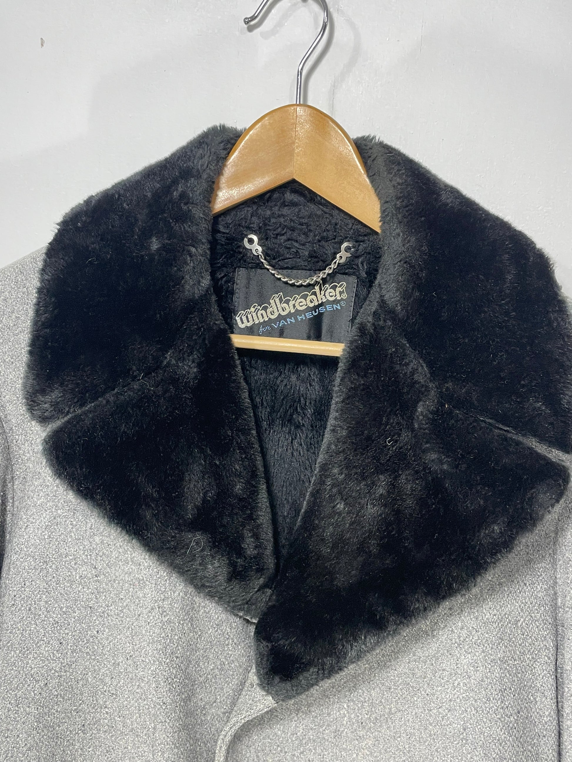 Label ‘Windbreaker by Van Heusen’. Wool shell, plush sherpa lining. Great condition— no flaws to note.