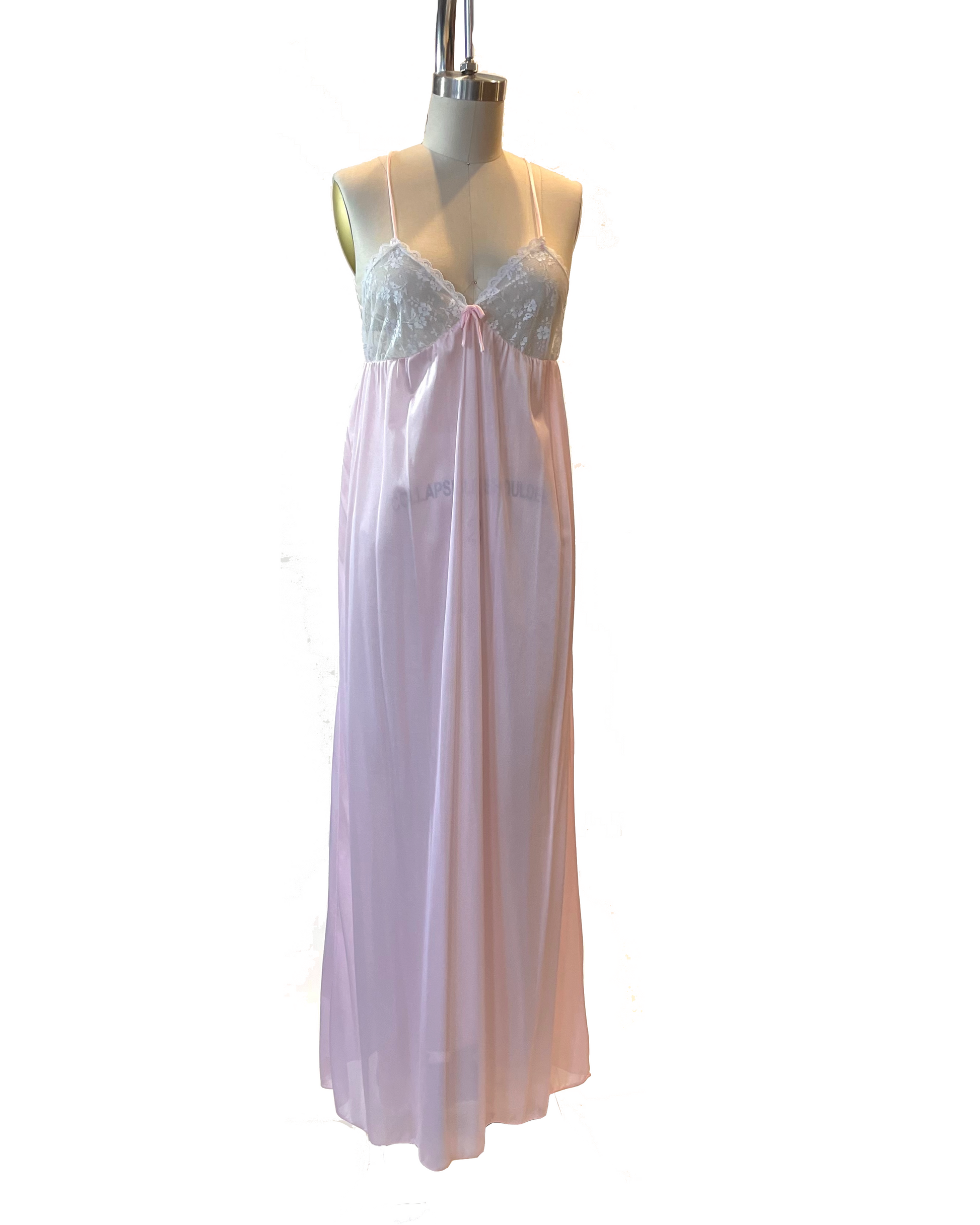 1970s Pastel Pink Lace Wrap Nylon Duster Nightgown