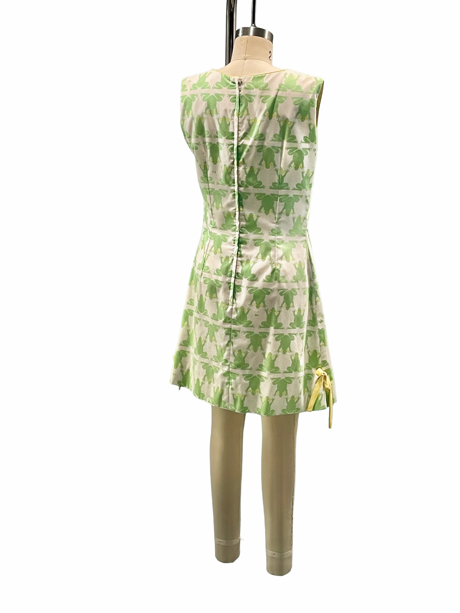 1970s Lime Green ‘The Vested Gentress’ Frog Print Shift Dress