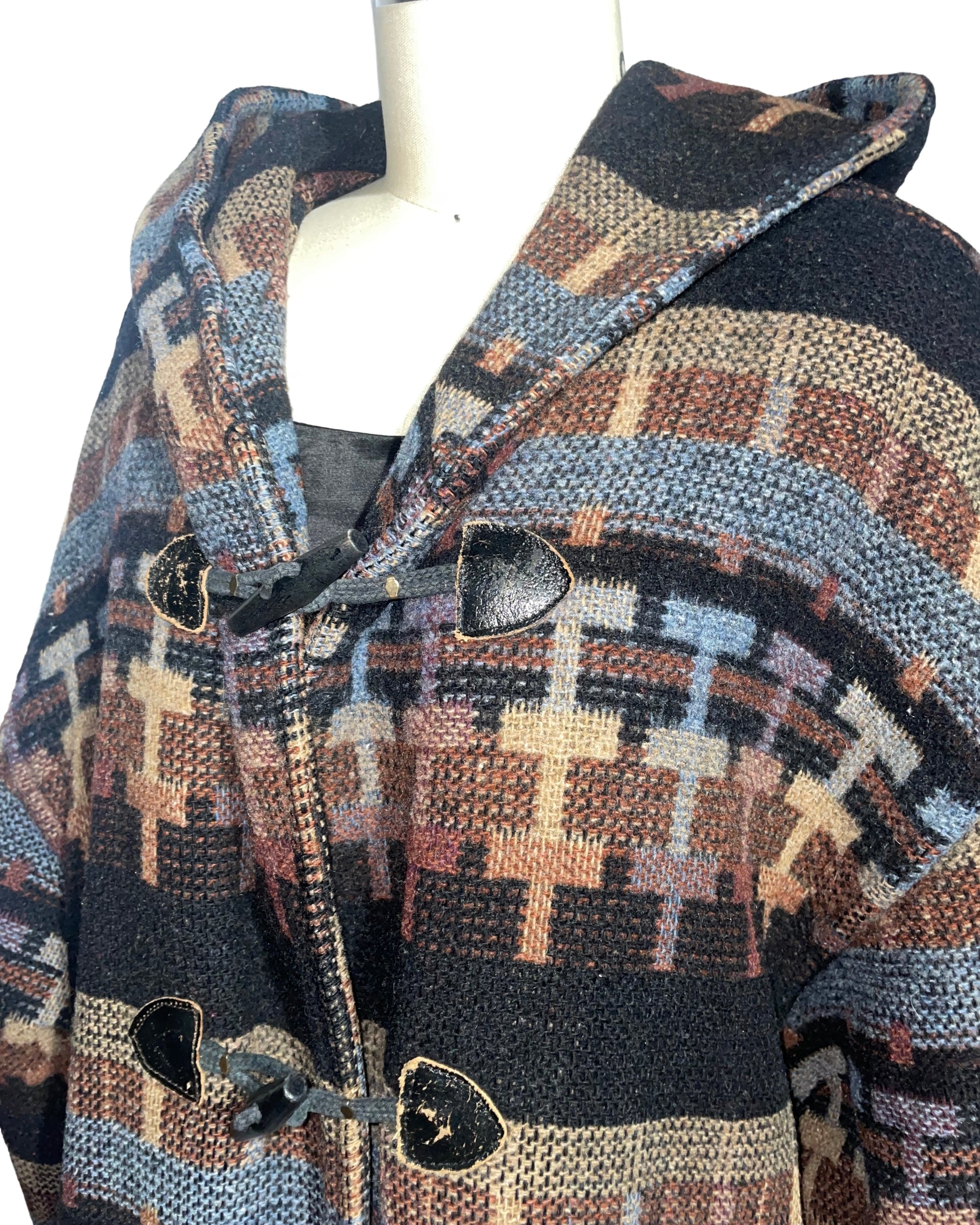 1980s Brown, Blue and Black Wool M Lyman Co. Hooded Toogle Coat