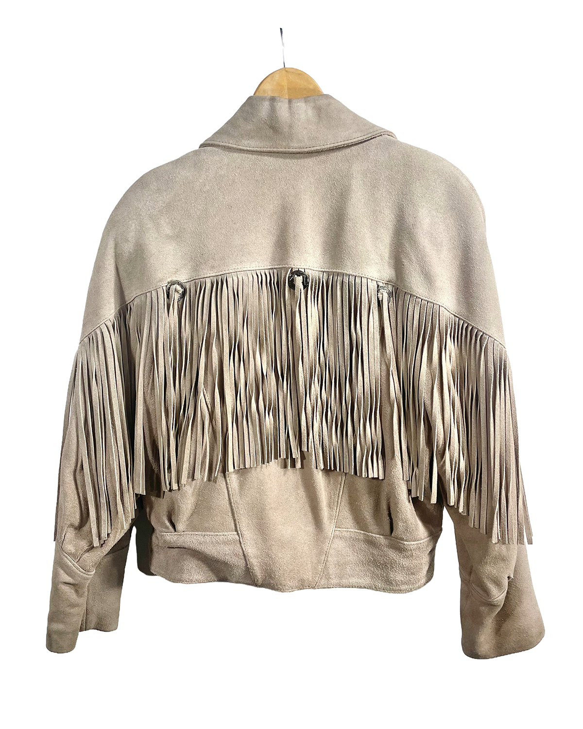 1980s Taupe Long Shag Fringe Double-Breasted Crop Leather Jacket