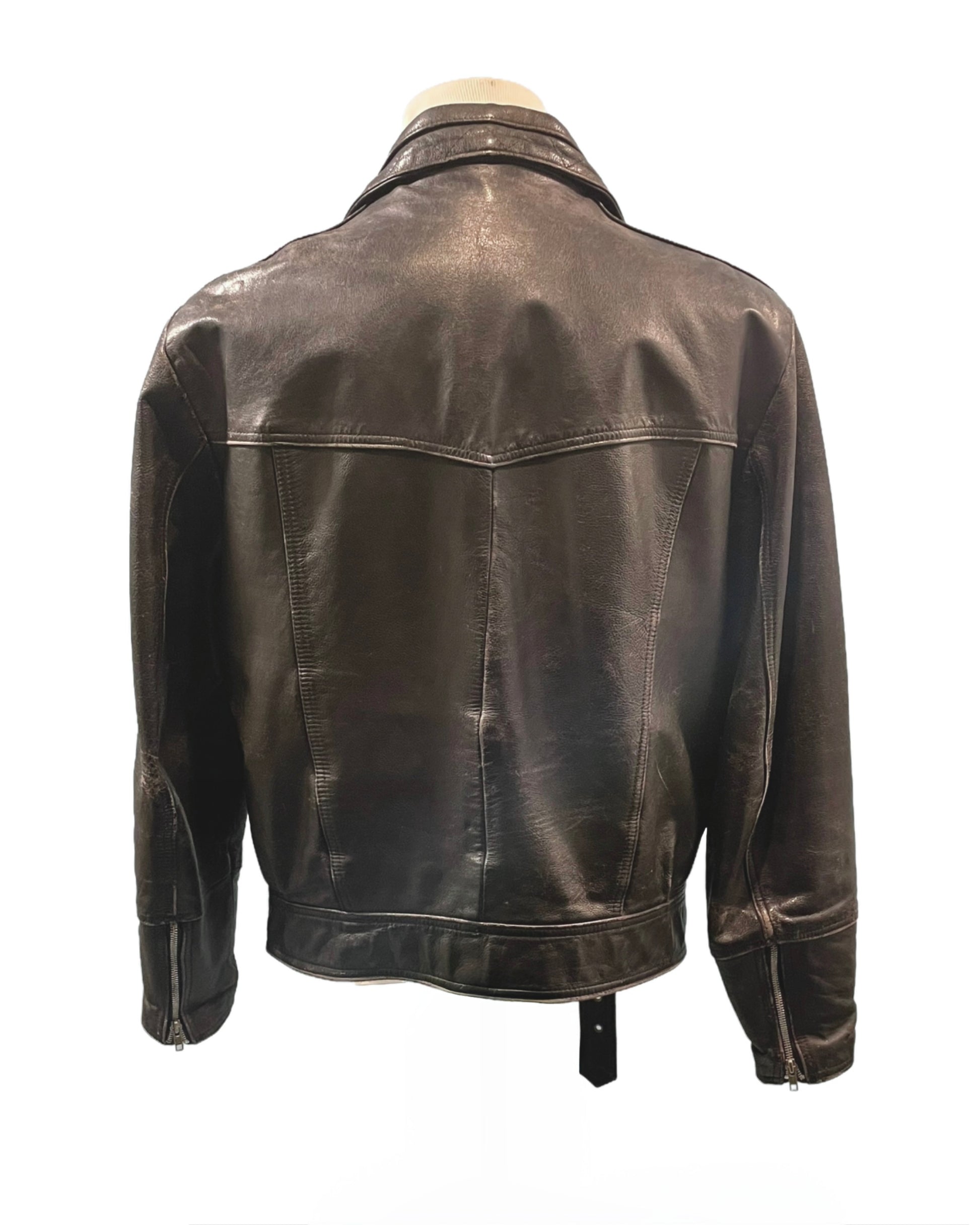 1990s Black Leather Open Road Belted Motorcycle Jacket